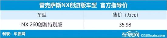 On September 12th, the Lexus NX 260 Creative Tour Special Edition was officially launched, with a new car price of 359,800 yuan and a limited edition of 1,000 units. It is reported that the new car is upgraded based on Lexus NX 260 Chuangyue Edition, with slight adjustments in design and configuration. (The pictures are all regular models)