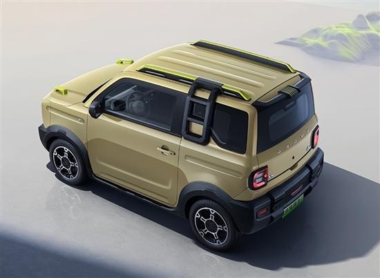 Panda Knight is the masterpiece of Geely Mini Electric Vehicle 2.0 era, and it is also the first mini electric vehicle with fast and slow charging. Its overall shape is small and tough, and the large black bumper is also equipped with a colored trailer hook. In addition, the square grille+round headlight group also improves its recognition. On the side, the new car is equipped with a side ladder in addition to the two-color luggage rack.