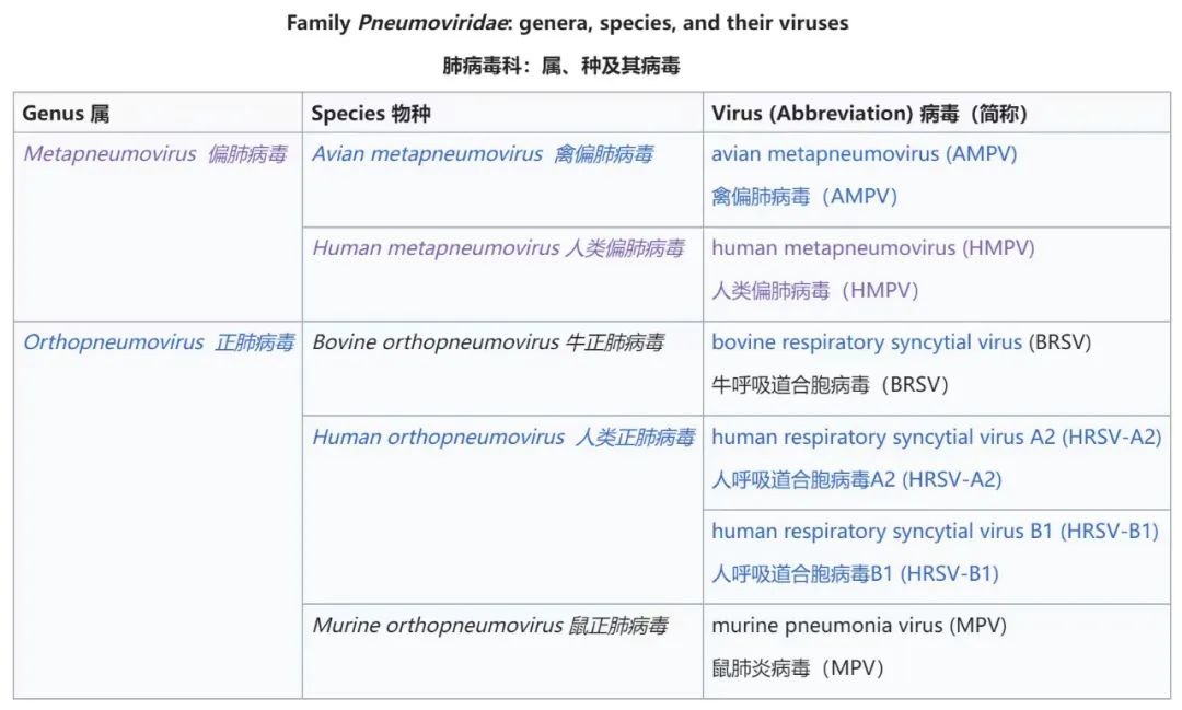 HMPV belongs to pneumoviridae. Pneumoviridae is named because its viruses are related to respiratory diseases of people or other animals, and the most famous one is RSV.