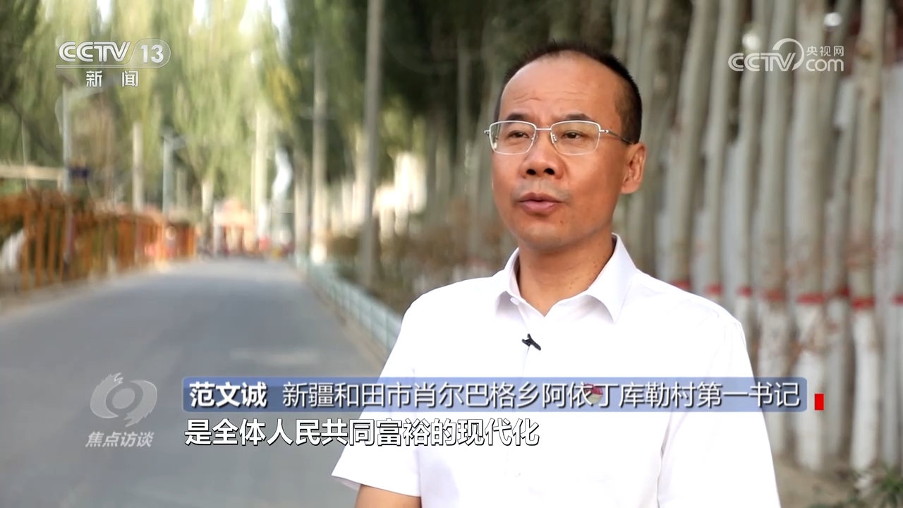 Fan Wencheng, the first secretary of Ayiding Kule Village, Shoerbage Township, Hotan City, Xinjiang, said: "Chinese modernization is a modernization with a huge population and common prosperity for all people. We should integrate theory with the current rural reality, and always insist on starting from the people and reality, and classify and determine the construction development model and characteristic industries."