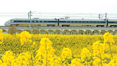 In Yancheng City, Jiangsu Province, the Harmony train galloped on the Yantong Railway. Photo by Zhou Gukai (Image China)