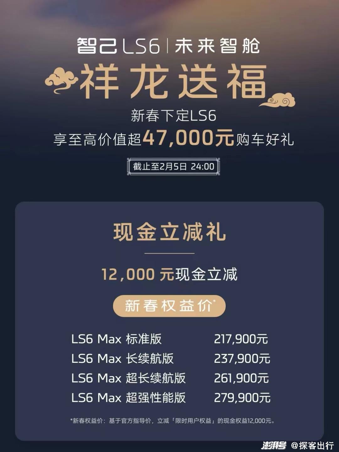 Perhaps in order to eliminate the buyer’s doubts about the failure of the car machine, perhaps in order to restore the downward trend in sales, or just for the Spring Festival promotion, Zhiji Auto opened a round (as of February 5) of price reduction at the end of January, and gave a cash discount of 12,000 yuan to Zhiji LS6 models listed for less than half a year.
